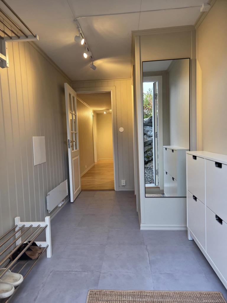 Nytt sommeren 2025: varmtvannsbereder, ytterdør og inngangsparti, nymalte flater, nye innvendige dører, oppvaskmaskin, kjøleskap, kjøkkenvifte, belysning, romløsning og stilrene wifi-glasspanelovner.