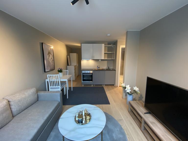 Beliggende i et rolig villa-strøk, med kort vei til turmuligheter og kollektivt, er dette en meget fin bolig. Pent møblert, alt av møbler følger med i leien, så vel som kjøkkenredskaper. Strøm og internett er også inkludert, så her er det bare å flytte rett inn.