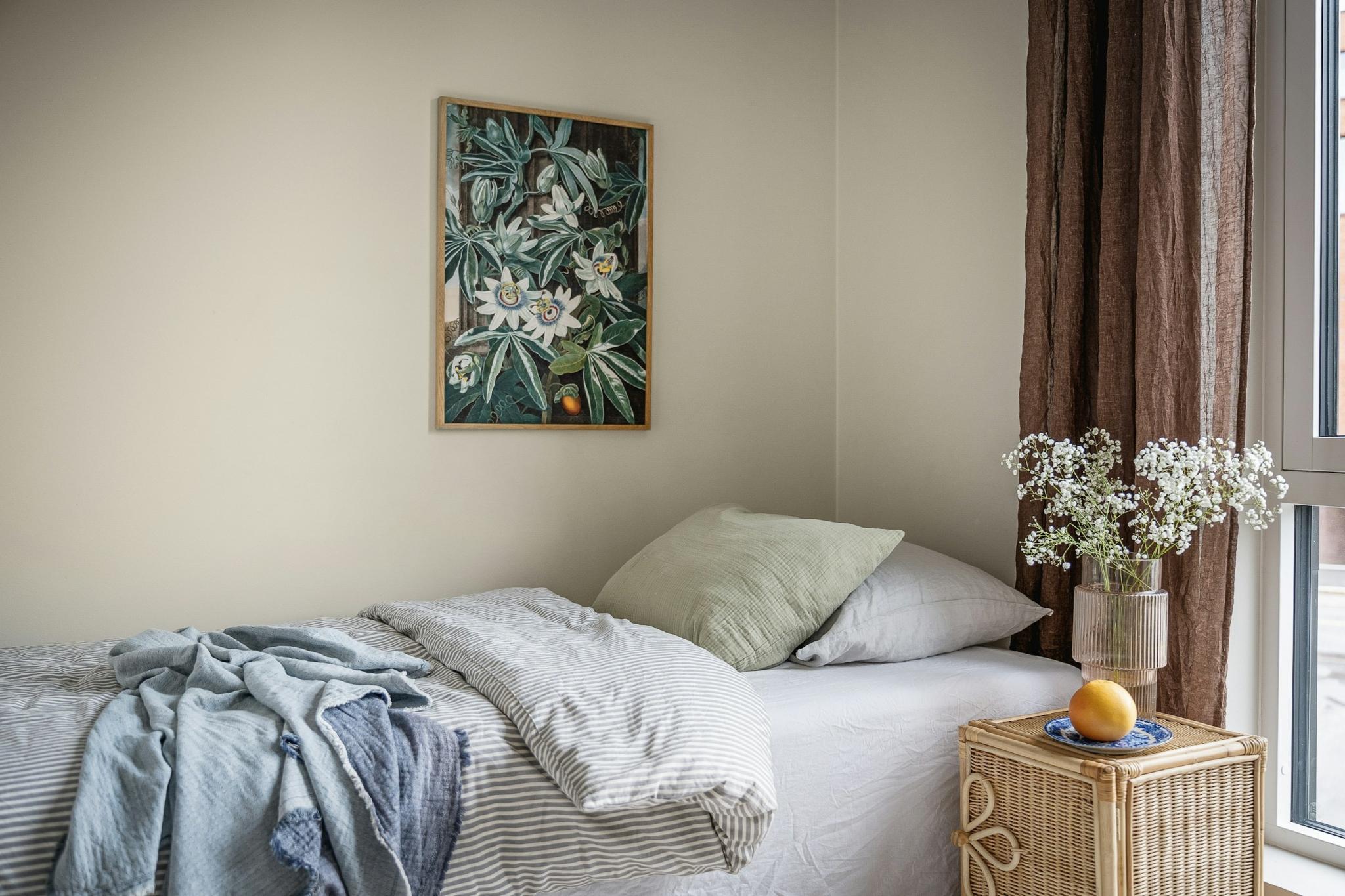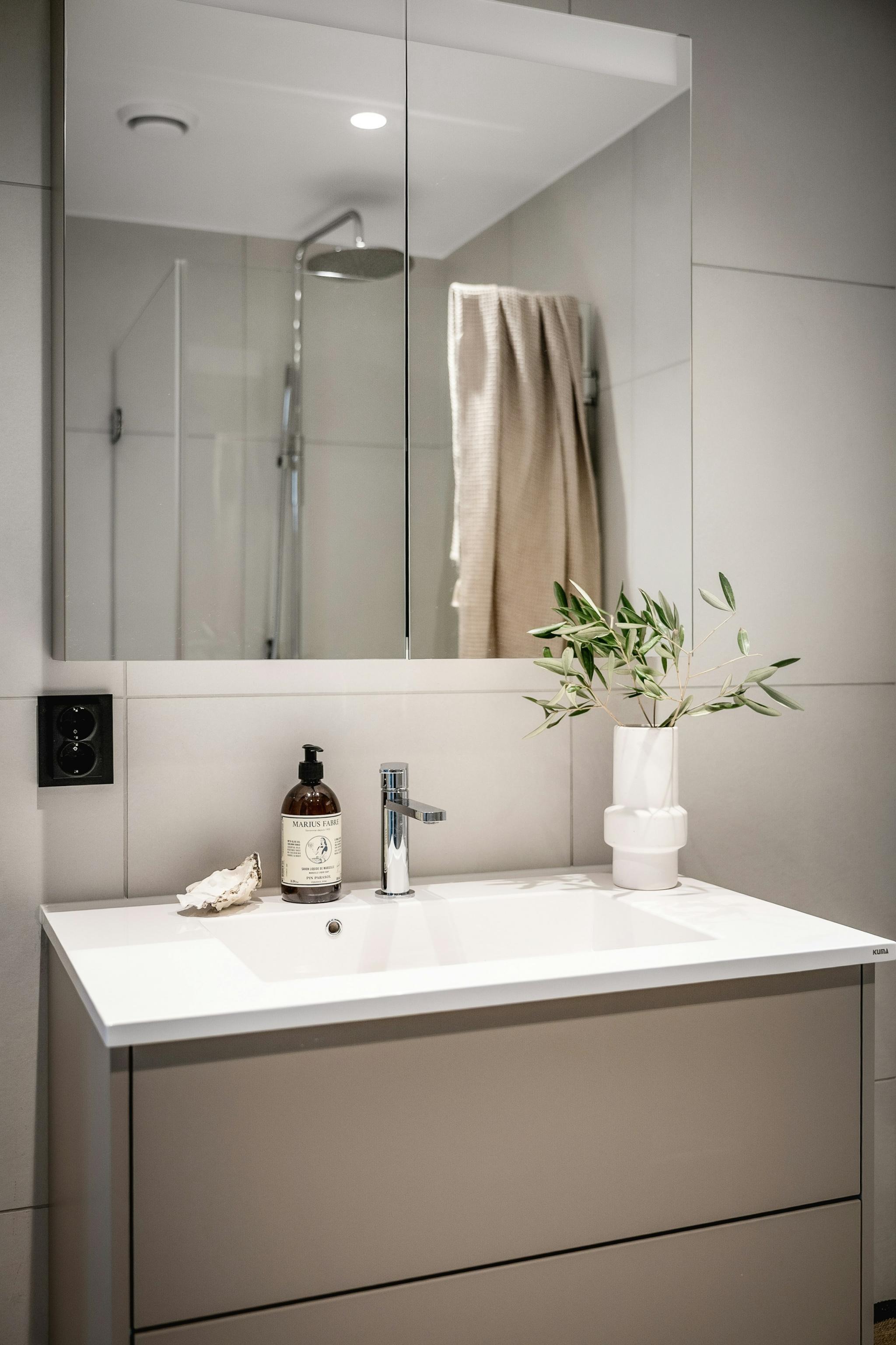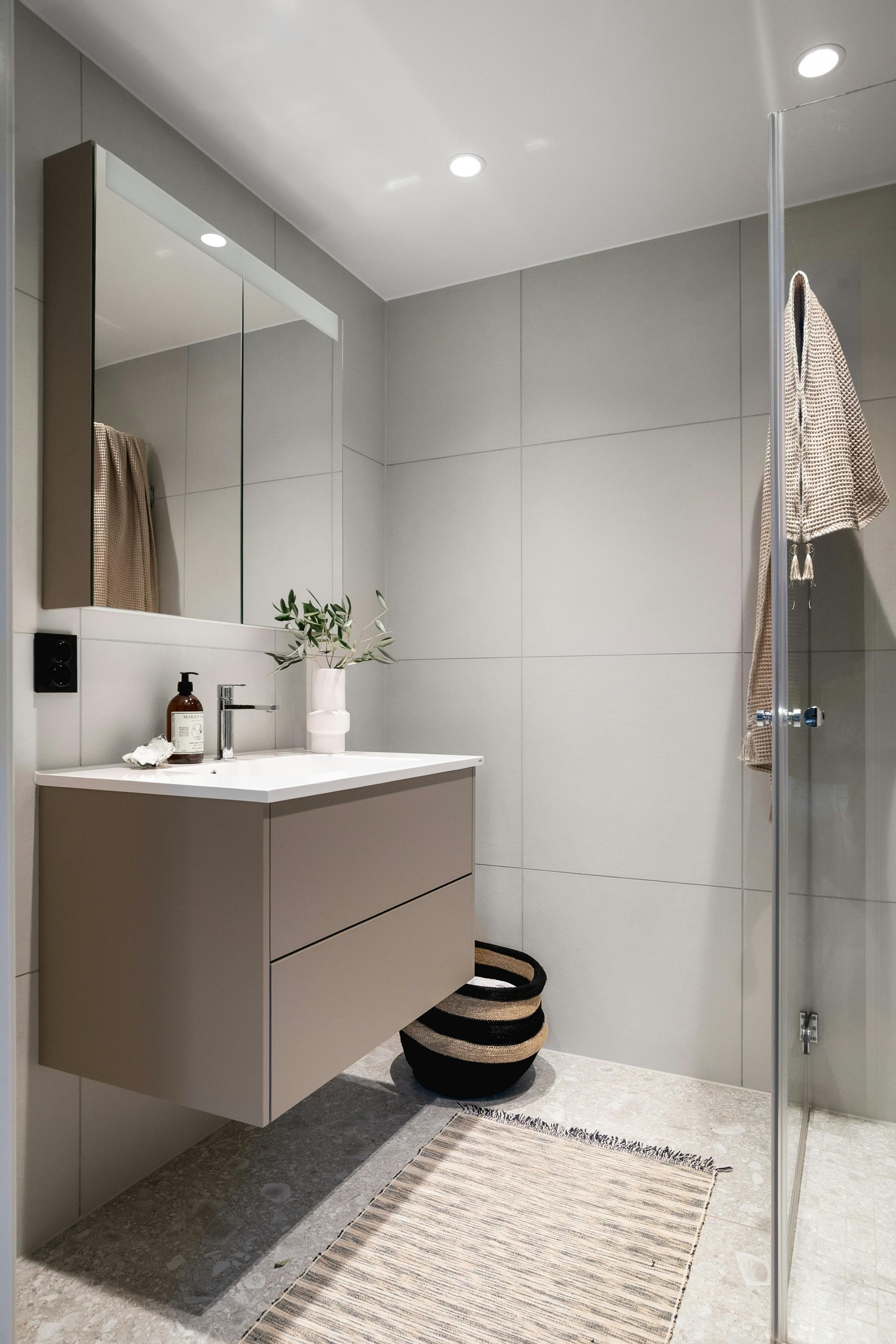 Leiligheten er på 92 kvm. (87 kvm BRA-i) har tre soverom og 2 bad, hvorav hovedsoverom har eget bad.
