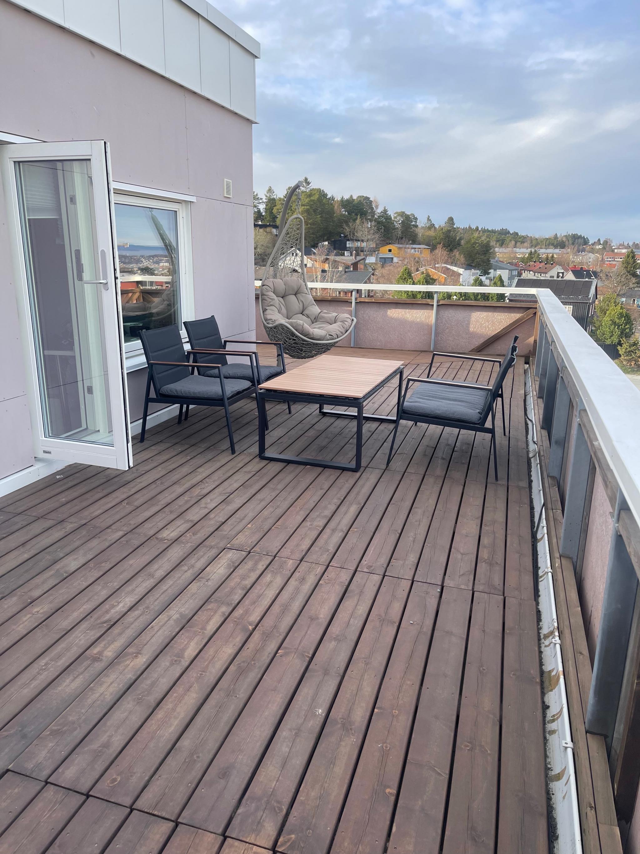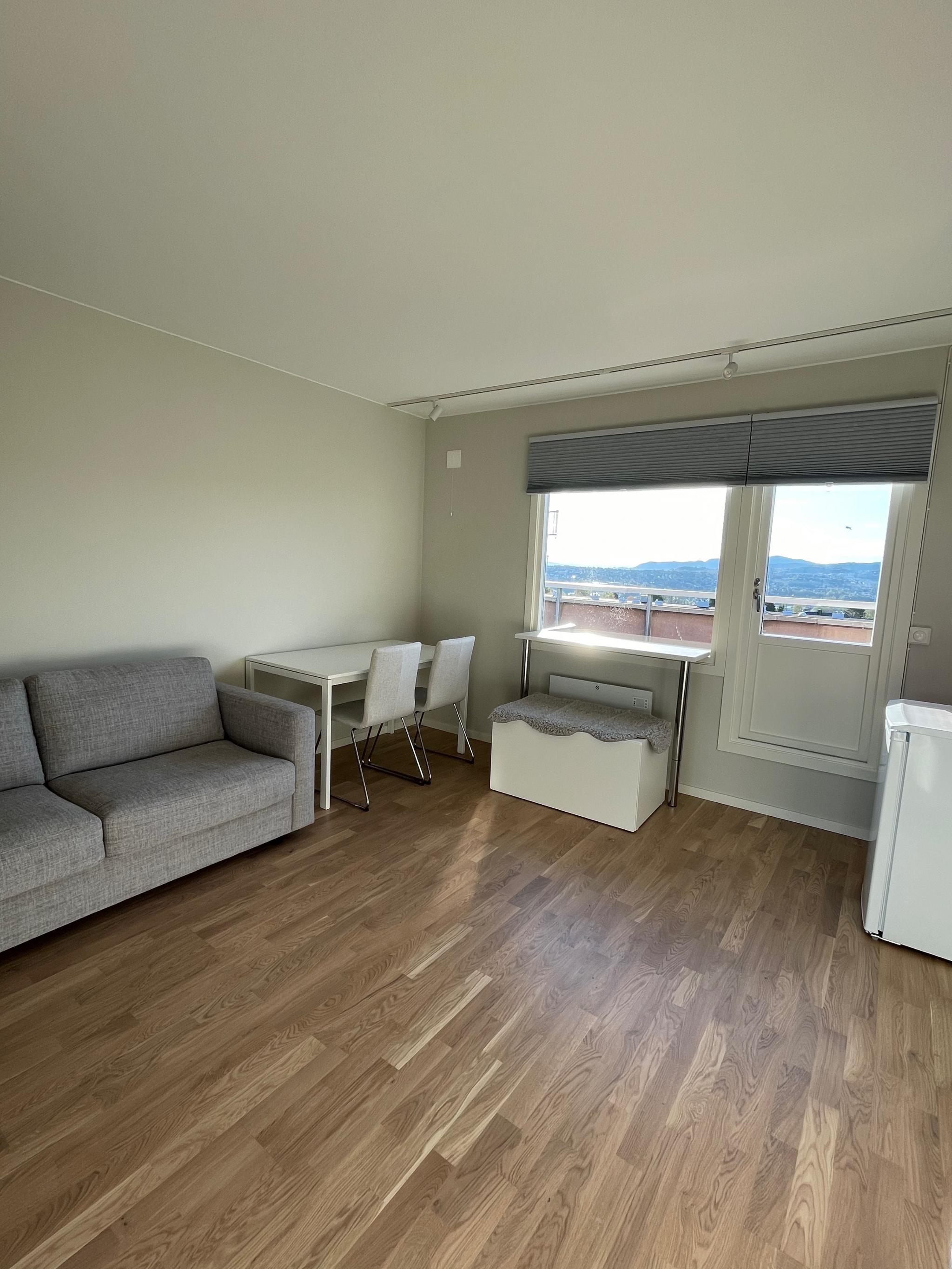 Leilighet på 25 kvm i Karolinerveien 2A i Trondheim leies ut fra slutten av mai til slutten av april. Boligen er møblert. Egen terrasse på 42 kvm med utemøbler og fantastisk utsikt og solforhold. Leiligheten leies ut for kr 11 000 per måned. Husleien inkluderer strøm, varmtvann, tv, kjøkkenutstyr, vaskemaskin? oppvaskmaskin. Sentralt, men samtidig nært turområder. Gode bussmuligheter. Perfekt dersom man har tenkt å tilbringe sommeren i Trondheim.