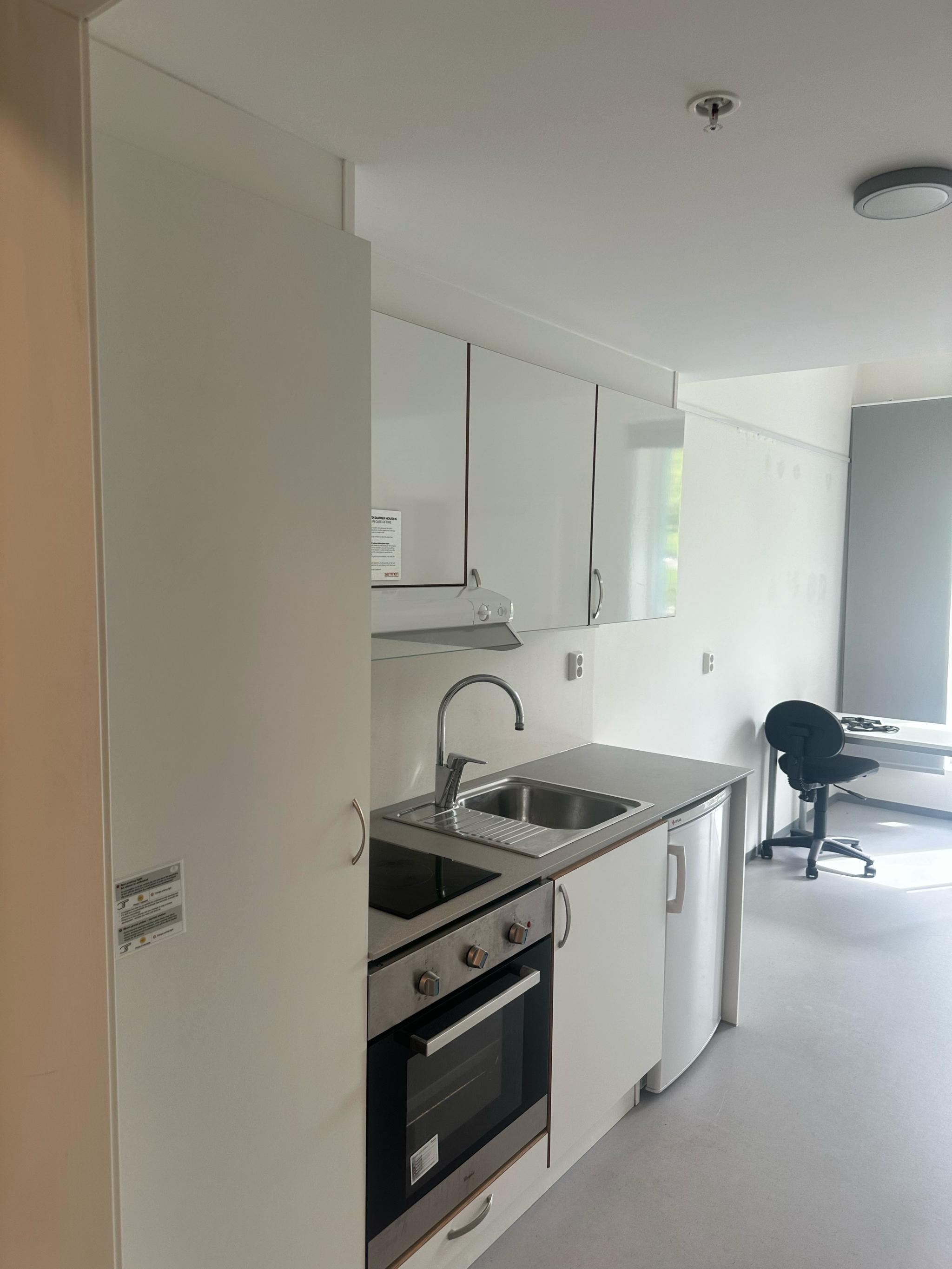 Leiligheten er på 29 m², har god takhøyde og en smart planløsning med separat soverom, egen stue/kjøkken og bad. Det separate soverommet gir en mer privat og romslig følelse sammenlignet med typiske studentboliger.