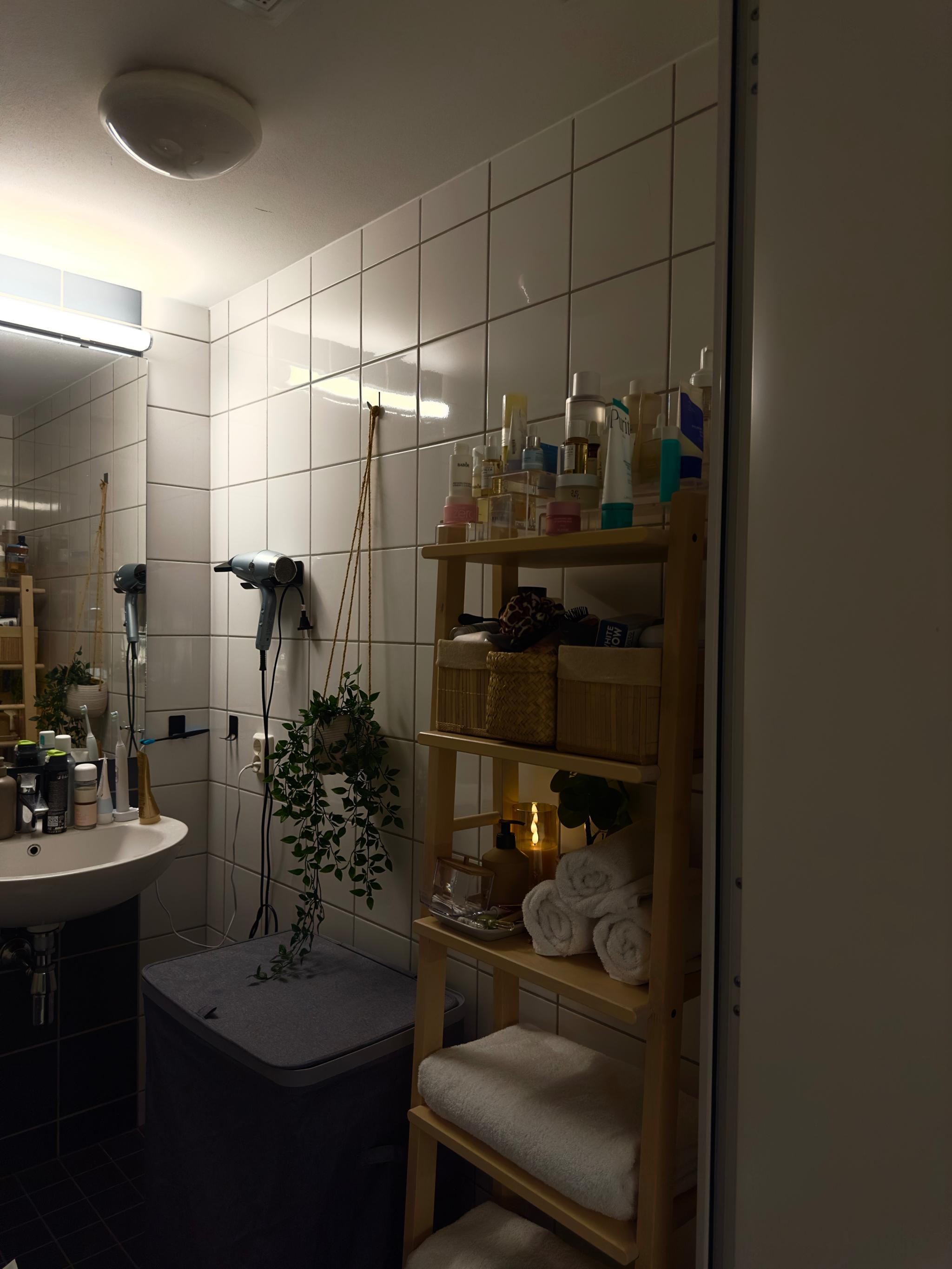 -Stort speil og oppbevaringshyller