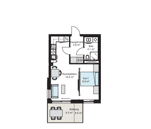 Leiligheten har en BRA på 39 kvm og et praktisk oppsett med ingen bortkastede kvadratmeter. Her får du virkelig valuta for pengene!