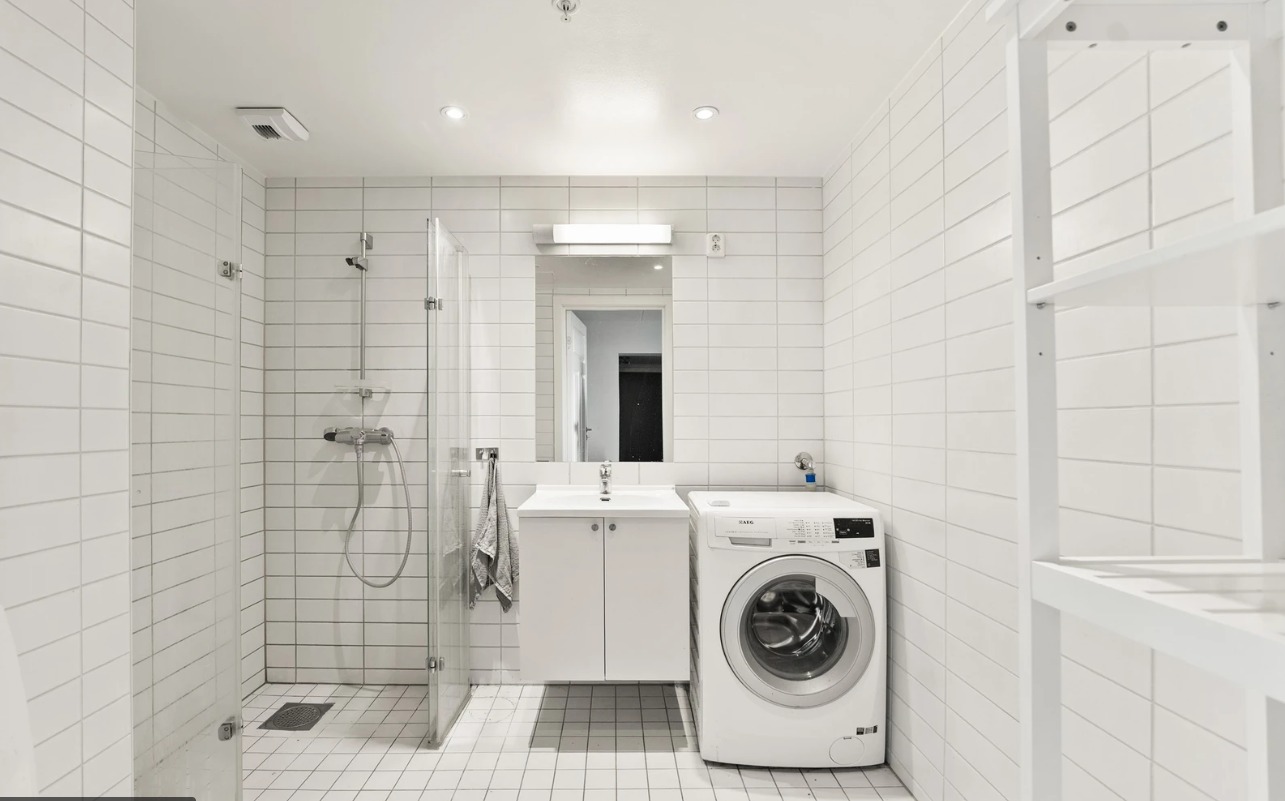 Flislagt bad med varmekabler og opplegg for vaskemaskin