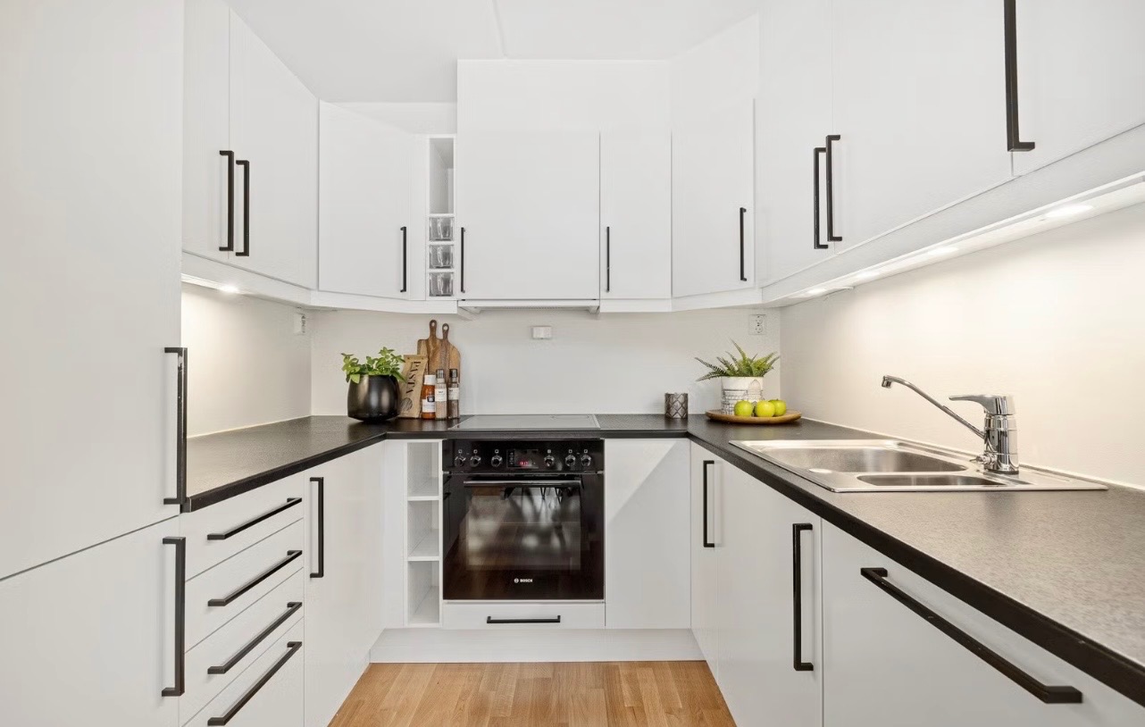 - Delvis møblert med følgende inventar: integrerte hvitevarer (kjøleskap, oppvaskmaskin, komfyr)
