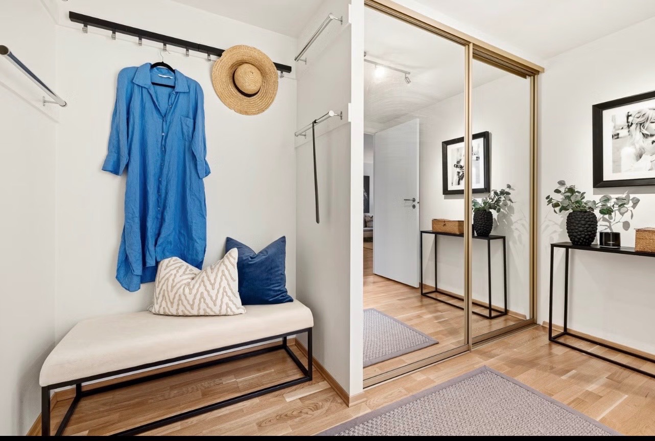 - Skyvedør i soverom og entre.
