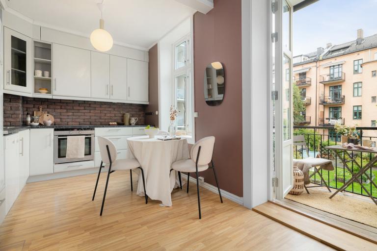 Velkommen til en lys og innbydende 3-roms med sentral beliggenhet på Grünerløkka. Leiligheten ligger tilbaketrukket og skjermet i indre gård. Den har en gjennomgående og god planløsning med store vindusflater og generøs takhøyde. Her får du en rolig bosituasjon i grønne omgivelser, samtidig som du bor svært sentralt med byliv, service og kollektivtilbud i umiddelbar nærhet.