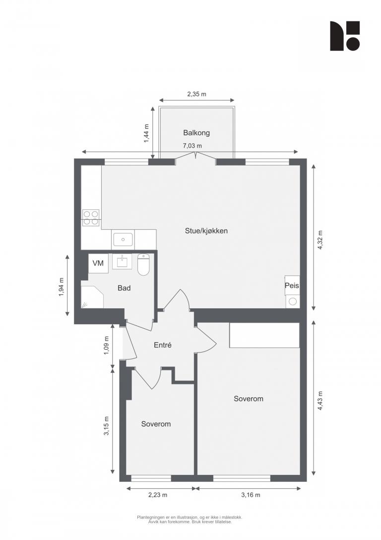 Leiligheten har to soverom og åpen stue- og kjøkkenløsning. Vinduer fra 2022 gir godt lysinnslipp, og fra stuen er det utgang til balkong mot grønn og rolig bakgård. Kjøkkenet har god standard med rikelig skap- og benkeplass, og badet er lyst og praktisk med vaskemaskin.